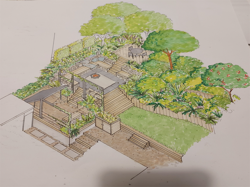 The clients wanted help transforming their un-useable and very steeply sloped garden, into a garden they could enjoy and grow with. They also wanted to try and reduce the amount of waste and re-use materials where possible.